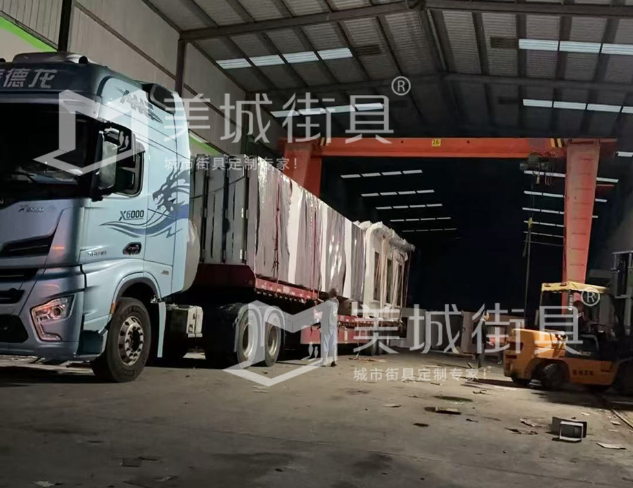 美城街具供應(yīng)候車亭發(fā)貨記錄,以下是公交候車亭發(fā)貨現(xiàn)場(chǎng)圖。