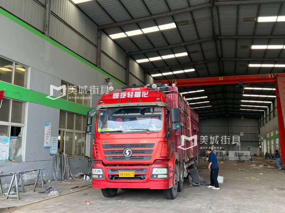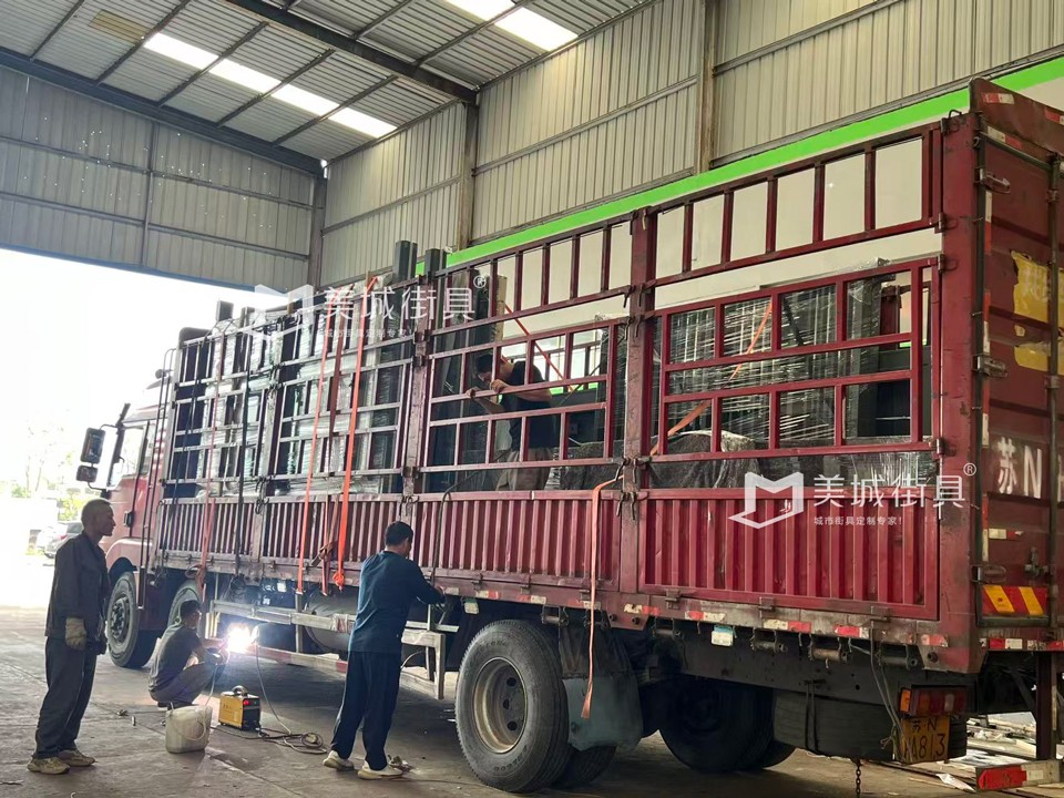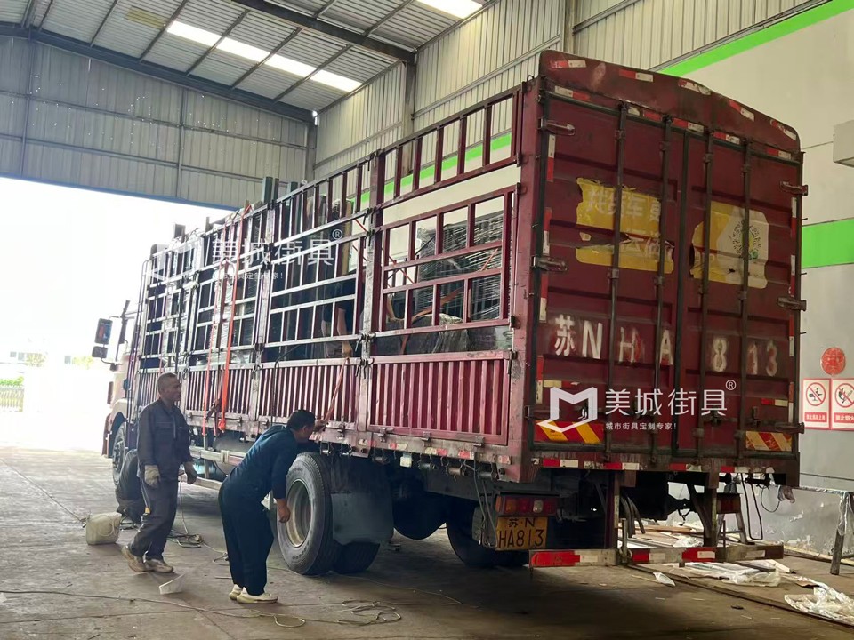 江蘇美城街具為新疆定制第六批候車(chē)亭公交站臺(tái)發(fā)貨案例